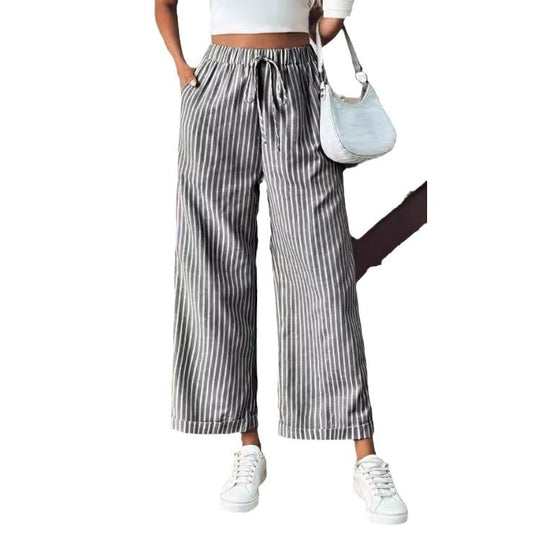 Pantalon Large Femme Rayé – Style Décontracté & Taille Élastique
